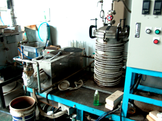 「蒸留の仕事を一緒にはじめた仲間のほとんどが、今はやめてしまいました。」 昨今のようなアロマセラピーブームもなく、販路を確保できなかったのが大きな要因だという。そんな状況下で、堀江さんは工場から排出される臭いを消すという分野に目をつけたのが分け目になった。 ただ、水蒸気蒸留の抱える問題点は、とにかく時間がかかりすぎるということだった。ひとつの窯で1日1回抽出することしかできない。これでは効率が悪く森の間伐材をすべてさばくことは難しい。
