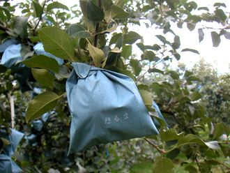 リンゴ栽培には果実に袋をかけない無袋栽培と、袋をかける有袋栽培があります。